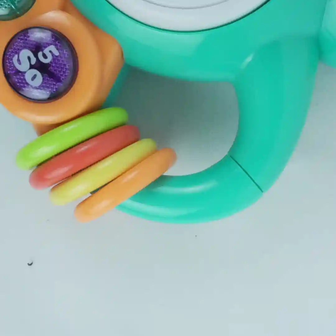El juguete está hecho de plástico de alta calidad, con bordes redondeados para total seguridad del bebé. Las ruedas son anchas y robustas, diseñadas para proporcionar una tracción estable y permitir el movimiento de balanceo. Los colores son llamativos y se enfocan en una paleta que encanta a los niños (rojo, amarillo, azul).