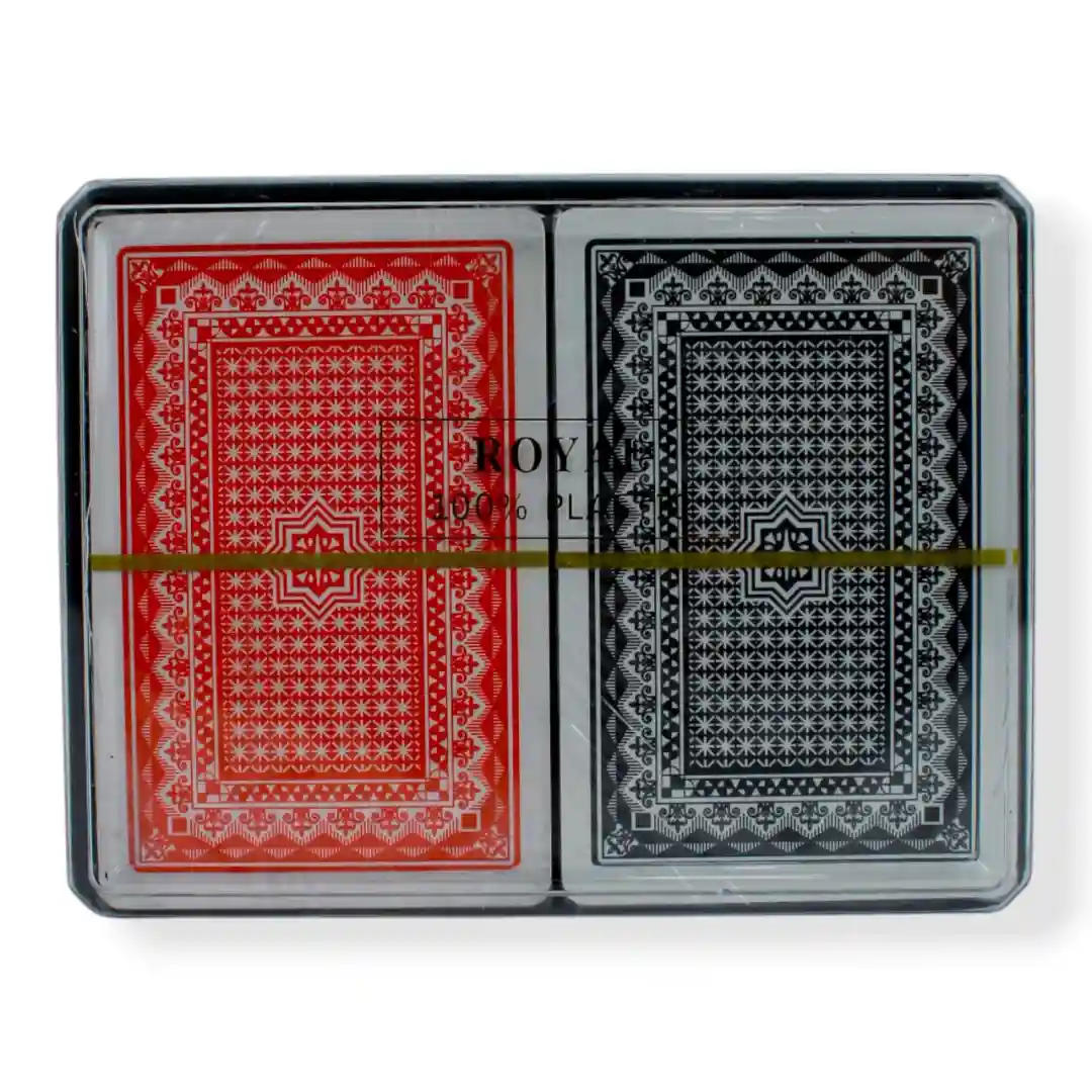 Diseño: Naipes de estilo póker, con diseño clásico en el reverso (disponible en color azul y rojo, según las imágenes de referencia).