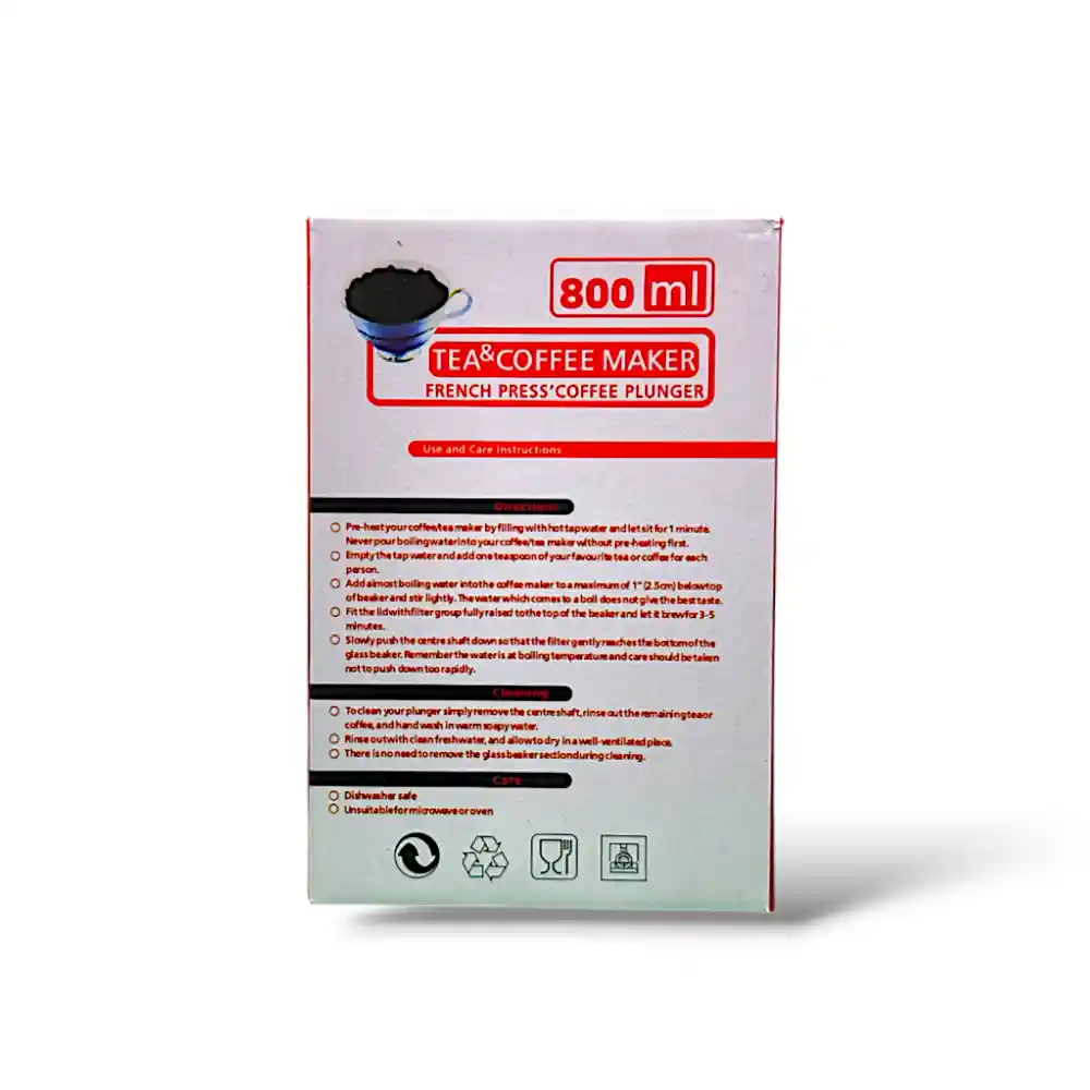 - Capacidad Ideal: Con una capacidad de 800ml, esta prensa francesa es perfecta para preparar varias tazas de café o té, ideal para compartir con amigos y familiares.