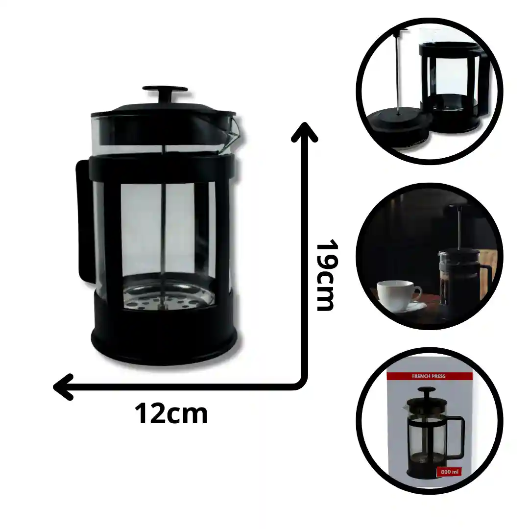 1 Prensa Francesa de 800 ml (con jarra de vidrio, base de plástico, tapa y émbolo con filtro).