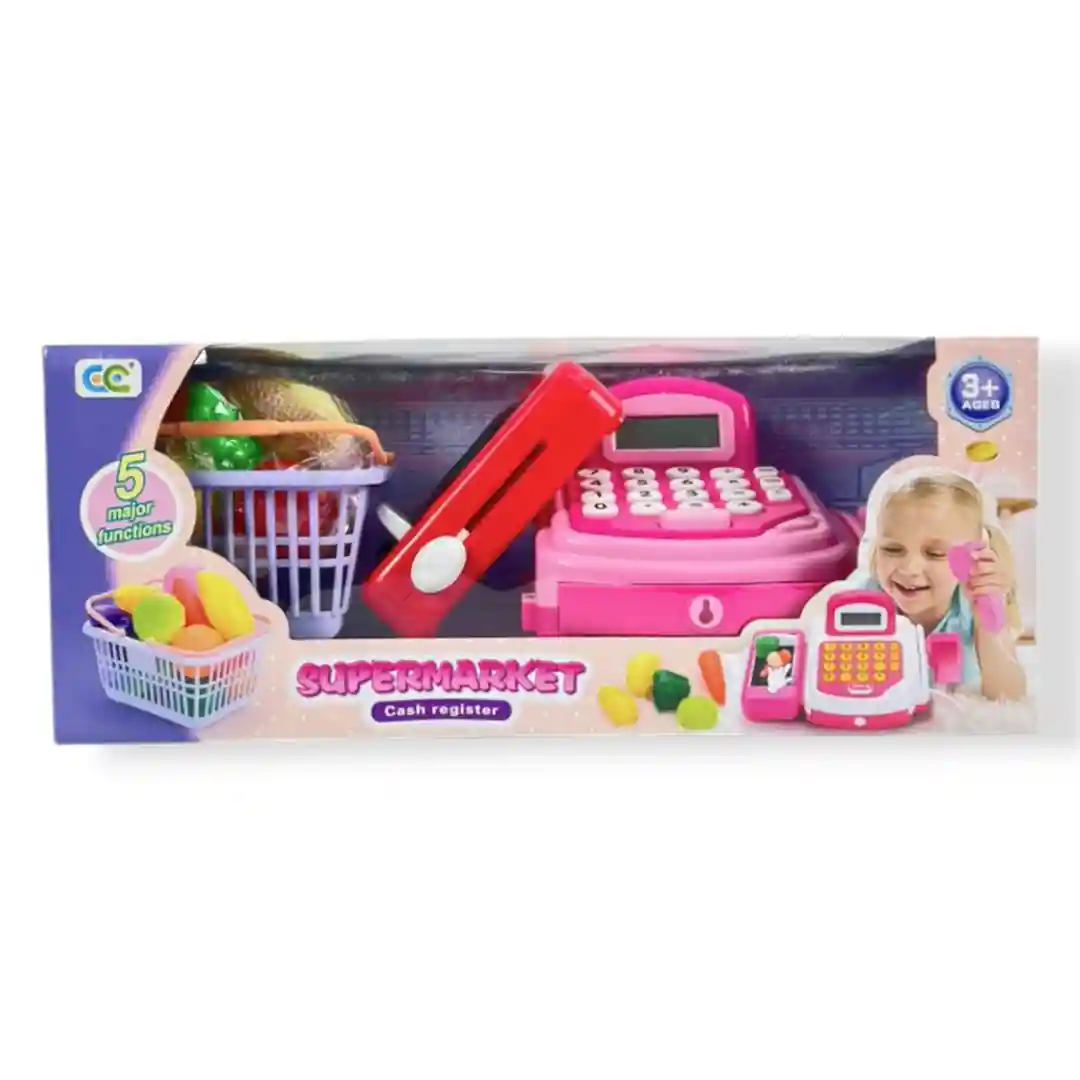 Una Registradora Llena de Diversión y Funcionalidad: Esta registradora de juguete, en un alegre color rosa brillante, es el centro de atención de cualquier supermercado imaginario. Está equipada con «5 funciones principales» que simulan una experiencia de compra real: