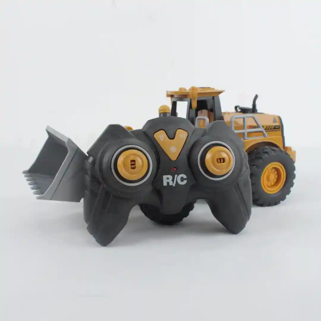 Sistema de Radio Control Intuitivo: Viene equipada con un mando a distancia que tiene un diseño cómodo y ergonómico. En él se aprecian múltiples botones y controles, lo que indica que se trata de un sistema de control de múltiples canales. Esto es fundamental porque te permite manejar la dirección del vehículo (adelante, atrás, girar) y, lo más importante, controlar los movimientos de la pala de forma independiente para excavar con precisión.