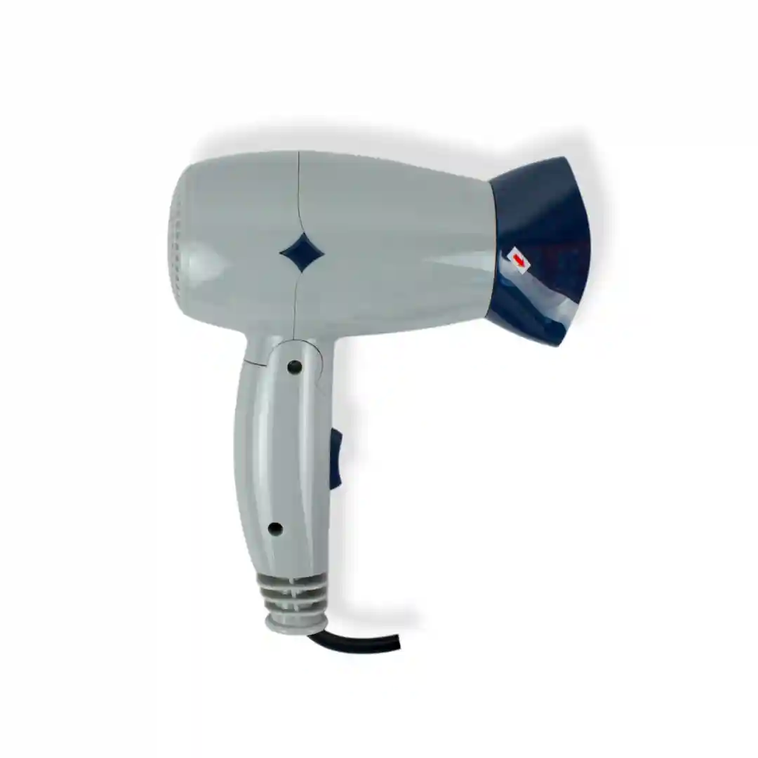 Este secador es una joya compacta, ¡pero no te dejes engañar por su tamaño! Es perfecto para llevarlo a cualquier aventura sin ocupar mucho espacio en tu maleta. Su diseño en tonos grises y azul marino le da un toque moderno y discreto.