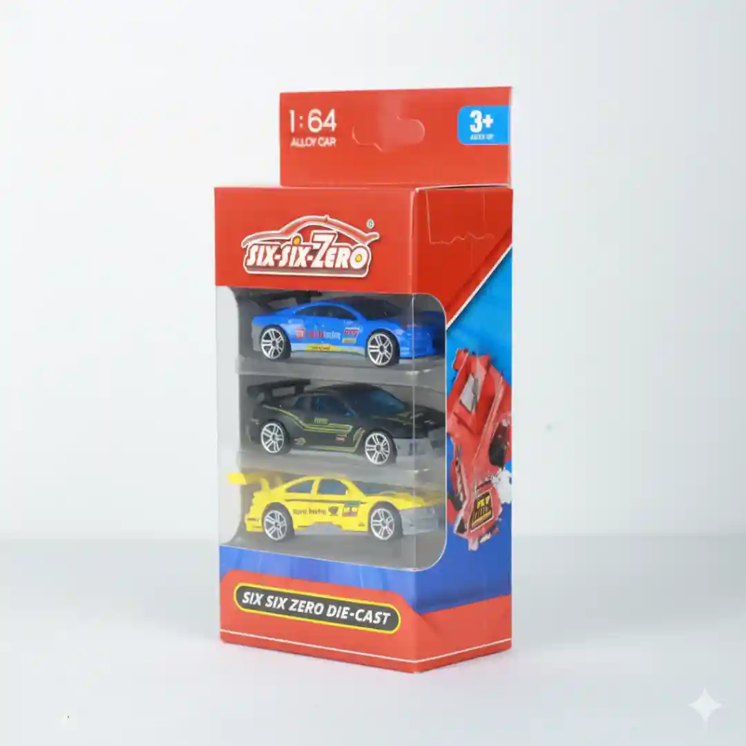 Este set de tres autos de colección, fabricados a escala 1:64, es un producto diseñado para el mercado infantil y coleccionista amateur. Cada set incluye tres modelos diferentes con un diseño deportivo, fabricados con una mezcla de plástico y aleación de metal que les brinda un peso y durabilidad superiores a los de un simple juguete de plástico. Son ideales para el juego de roles y la colección.