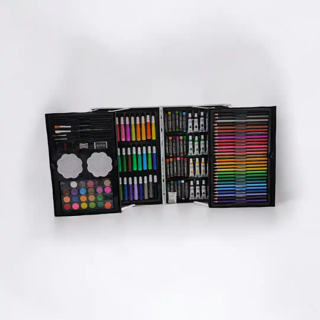 ¡Un mundo de color y diversión te espera! Este completo set de arte es el compañero perfecto para que los pequeños artistas exploren su lado creativo y den rienda suelta a su imaginación. Con una amplia variedad de materiales de alta calidad y diseños divertidos, este conjunto todo en uno ofrece horas de diversión y aprendizaje.