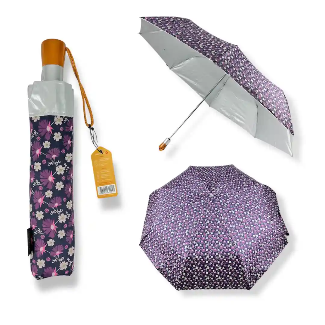 Doble Capa para Mayor Protección: A diferencia de las sombrillas tradicionales, el modelo VICTORIA-B cuenta con una doble capa de tela. Esta característica no solo la hace más resistente al viento, evitando que se voltee fácilmente, sino que también incorpora un filtro UV avanzado. La capa interna plateada (visible en las imágenes al revés) bloquea eficazmente los dañinos rayos ultravioleta del sol, brindándote una excelente protección solar en los días más calurosos.