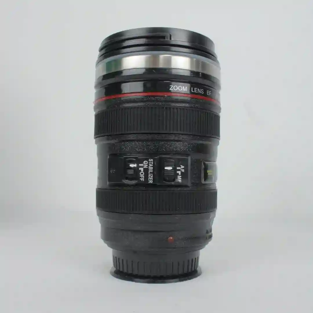 Termo con diseño creativo y realista en forma de lente de cámara fotográfica profesional, ideal para entusiastas de la fotografía y usuarios que buscan un accesorio único y funcional. Su estructura de doble capa permite mantener la temperatura de las bebidas mientras ofrece un exterior detallado que simula los anillos de enfoque y zoom de un objetivo real. Incluye una tapa hermética con diseño de lente frontal para asegurar el contenido y facilitar su transporte.
