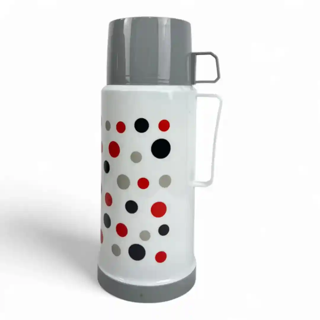 Este termo se distingue por su moderno patrón de puntos en colores rojo, negro y gris sobre un fondo blanco, que le confiere una personalidad única y alegre. Su capacidad de 1.0 litro es perfecta para uso individual o para compartir, asegurando que siempre tengas suficiente de tu bebida favorita a mano.