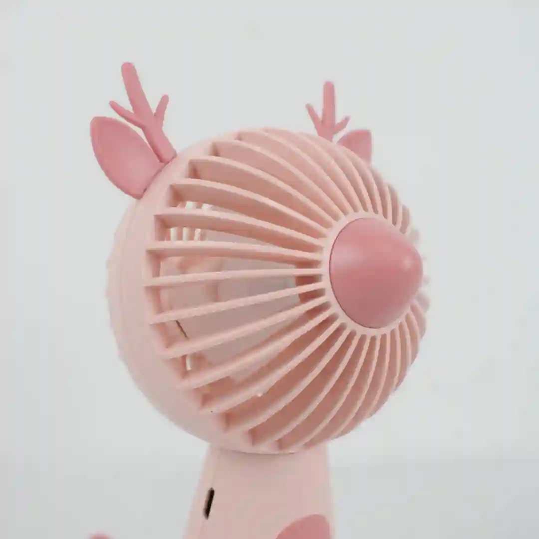 Ventilador portátil de accionamiento mecánico con diseño de personajes animados. Este dispositivo funciona sin necesidad de baterías ni energía eléctrica, activándose mediante una palanca de presión manual que genera una brisa refrescante de forma inmediata. Su estructura es ligera y ergonómica, diseñada especialmente para un uso seguro y sencillo en exteriores, viajes o ambientes escolares.