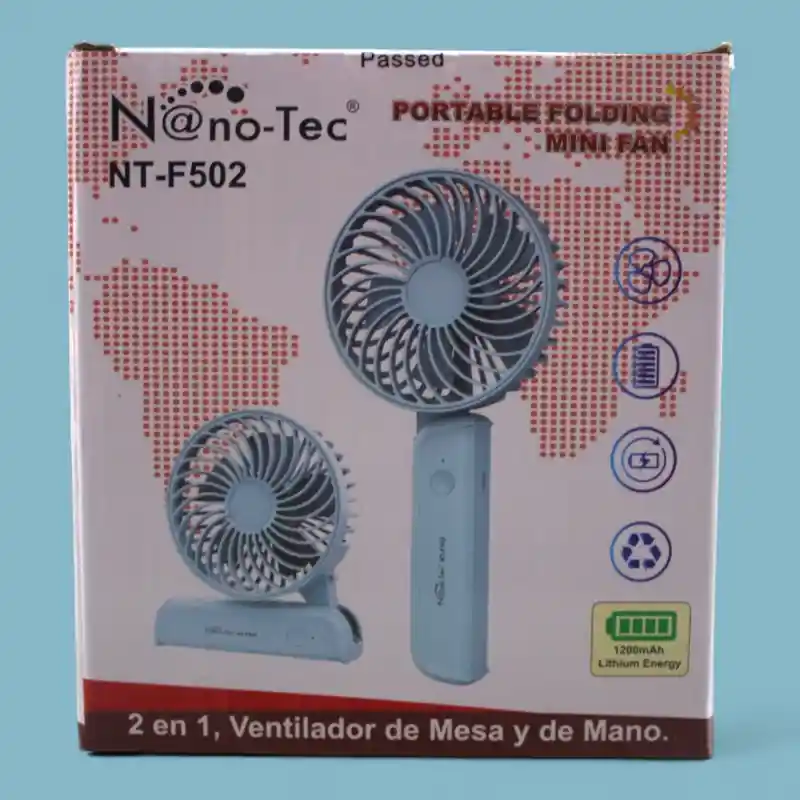 Disfruta de una brisa refrescante en cualquier lugar con el Ventilador Portátil Plegable Nanotec NT-F502. Este versátil ventilador ofrece la conveniencia de un ventilador de mesa y la portabilidad de un ventilador de mano en un solo dispositivo. Con su diseño plegable, batería de 1200mAh y funcionamiento silencioso, es perfecto para usar en casa, en la oficina, de viaje o en cualquier actividad al aire libre.